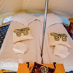 W willi udostępniono urządzenie do parzenia kawy/herbaty do samodzielnego przygotowywania posiłków. Goście mogą również korzystać z kuchenki mikrofalowej i lodówki, aby samodzielnie przygotować posiłek. Dania kuchni rumuńskiej serwowane są w restauracji OK by Ovo House Restaurant, która znajduje się w odległości minutowej jazdy samochodem od obiektu. Prawie 5 min spacerem od luksusowego namiotu znajduje się przystanek Vama Veche.